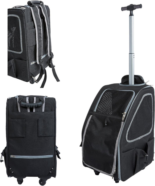5-In-1 PET Carrier, Features: Rolling, Top Handle, Backpack, Luggage Attachment, Car Seat All in ONE for Small to Medium Dog, Cat, Bunny, Supports Pets up to 25LBS - Pepper
