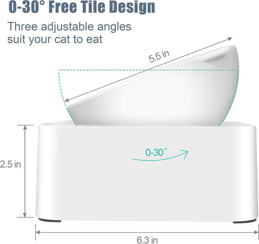 Raised Cat Food Water Bowl Elevated Cat Bowl with Detachable Stand, No Slip Pet Food Feeder Bowl, 0-30°Adjustable Tilted Cat Dog Dish Bowl Stress-Free, Protecting Spine