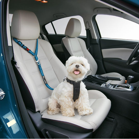 Comfortable Dog Seat Belt Harness for Car - 2-In-1 Leash and Restraint Secures to Headrest. Adjustable Bungee, Strong, Durable, 360 Degree Swivel Attach Won'T Twist, Reflective, Easy to Use (Blue)