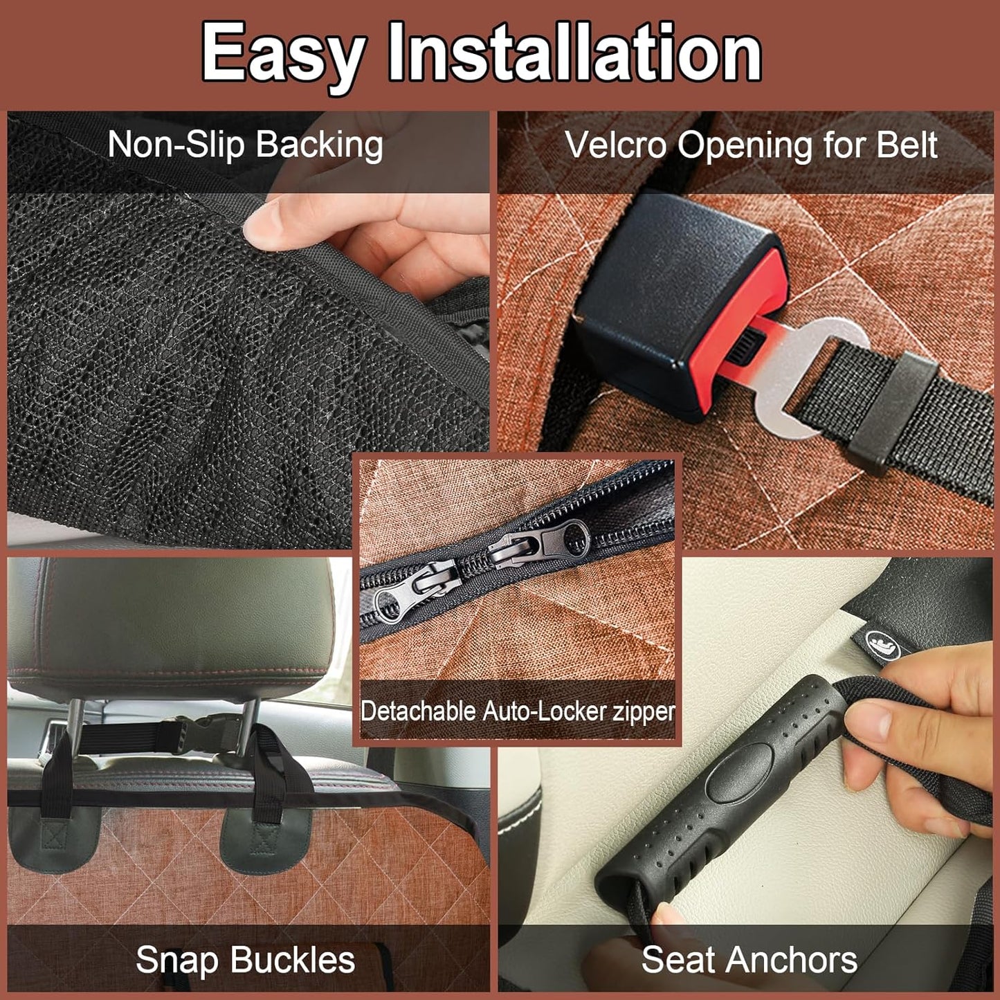 Car Dog Hammock - Waterproof Seat Cover with Mesh Window and Big Pocket for Back Seat - Nonslip Rubber Back, Washable Luxury Material for Car/Suv